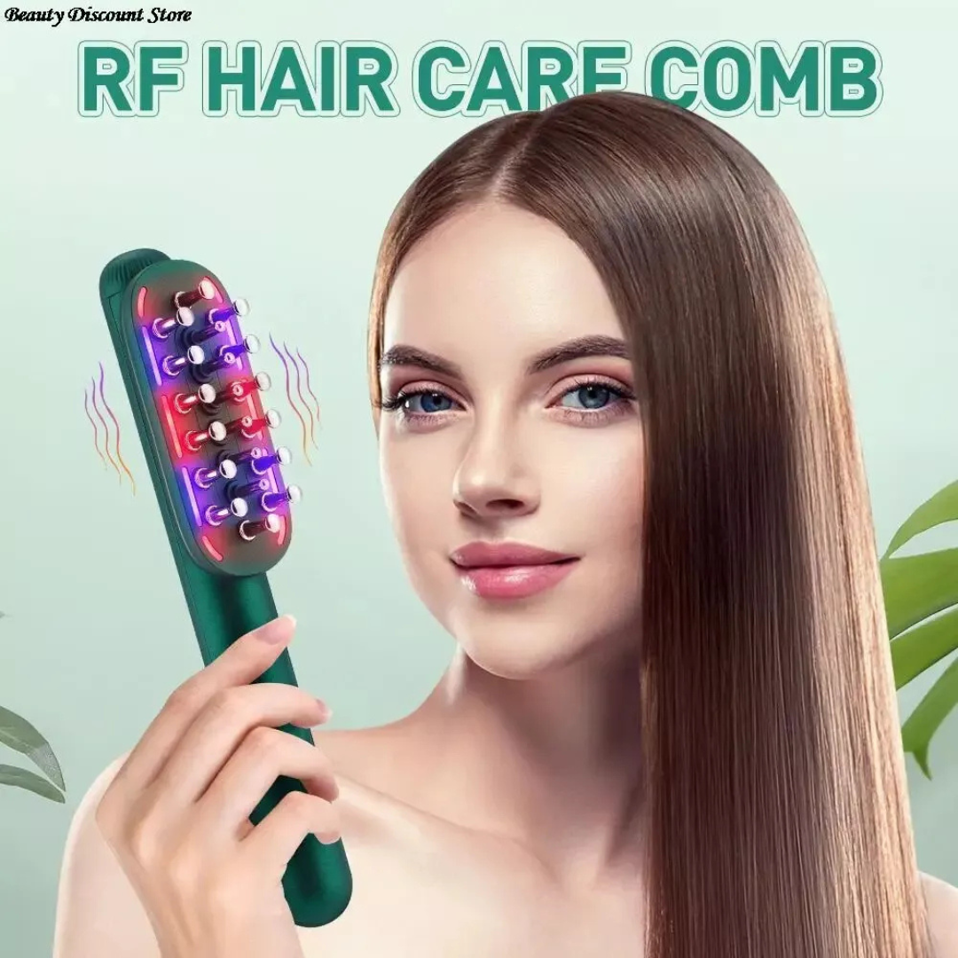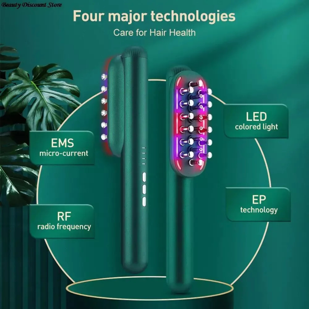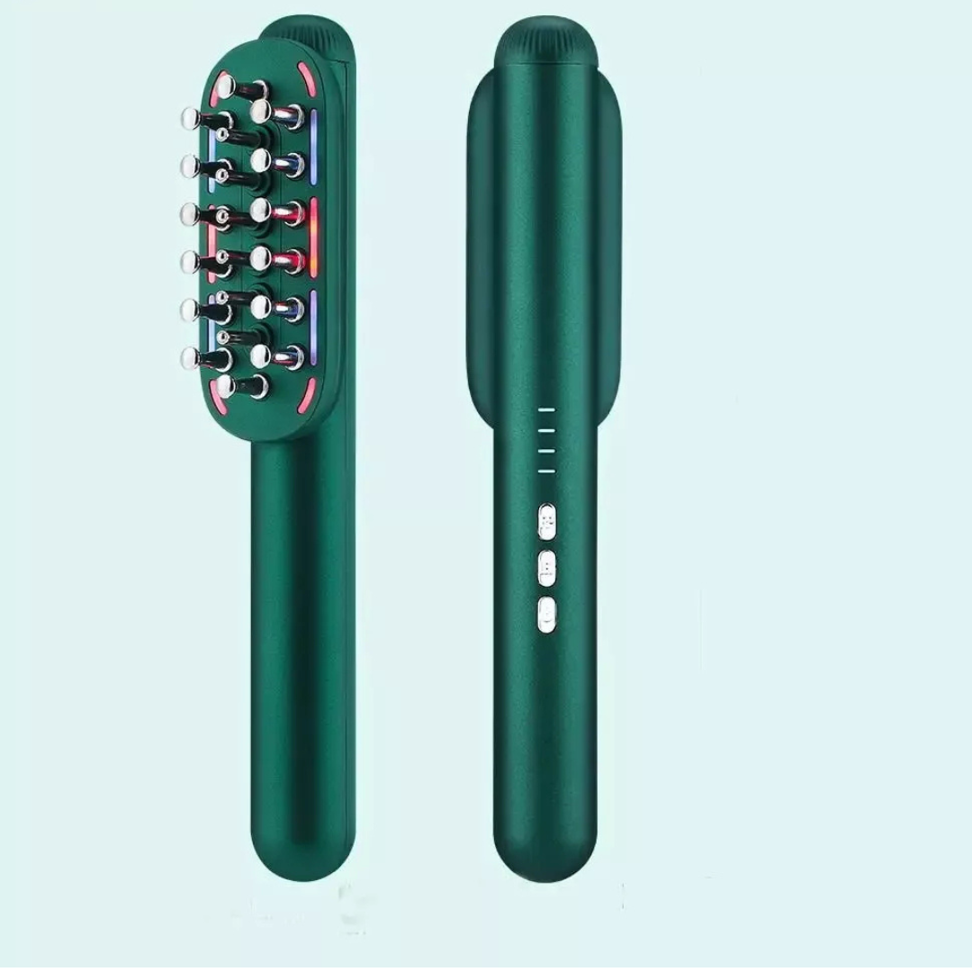 Cepillo Láser Para Terapia CapilarPeine RF para el cuidado del cabello, microcorriente, eléctrico, acondicionador de cabello para el hogar, luz LED de color, radiofrecuencia, compresa caliente,características de cuidado del cuero cabelludo:1. Utiliza cuatro tecnologías principales: microcorriente EMS, radiofrecuencia RF, luz de color LED y tecnología EP, cuida cuidadosamente la salud de tu cabello.2.Este peine eléctrico para el cuidado del cabello masajea el cuero cabelludo a través de los dientes del peine, inyecta factores de salud en el cabello, promueve el crecimiento del cabello y hace que el cabello sea cada vez más grueso. 3.Cuatro niveles de ajuste, programas de cuidado del cabello hechos a medida, fortalecen eficazmente las raíces del cabello, mejoran la calidad del cabello, reducen la caída y la rotura del cabello. 4.Equipado con un gotero, nuestro peine se puede usar con una loción para el crecimiento del cabello para promover la absorción de nutrientes por parte del cabello y obtener mejores resultados. 5. Este peine eléctrico es fácil de transportar, por lo que puedes disfrutar de un spa de cuidado del cabello a nivel de salón de belleza en cualquier momento y en cualquier lugar.Especificaciones: color: verde oscuro Material: ABS+acero inoxidableVoltaje de carga: 5 VCorriente nominal: 0,38 APotencia nominal: 1,6 WPeso neto: 0,145 kgTamaño del producto: 22 x 4 x 5 cmTamaño del paquete: 23,8 x 8 x 5 cm